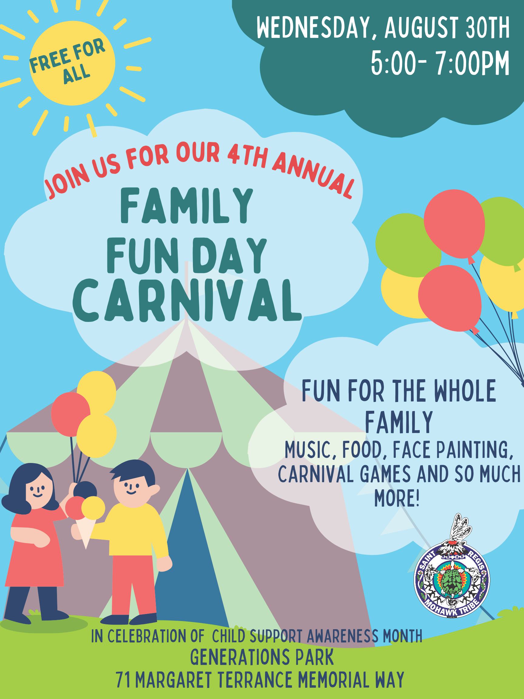 Education will be set up at the Family Fun Day Carnival on Wednesday, August 30, from 5pm-7pm at Generations Park.