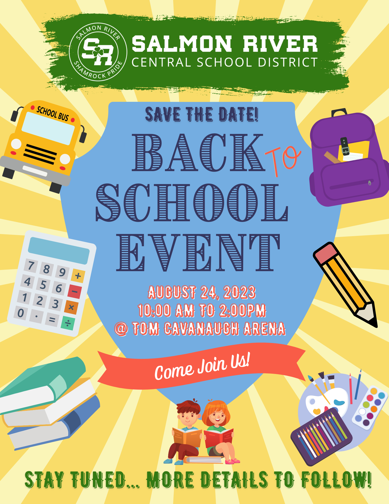 Education will be set up at the SRCS Back-to-School event on Thursday, August 24, from 10am - 2pm, in the Tom Cavanaugh Arena (Salmon River School).